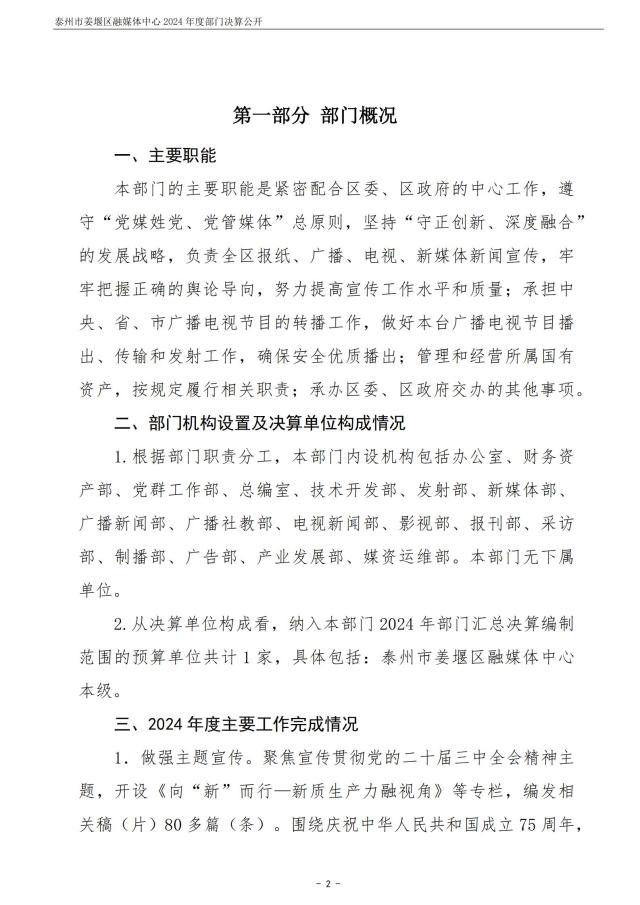 2024年度泰州市姜堰区融媒体中心部门决算公开