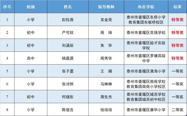 泰州市中小学生“学宪法 讲宪法”演讲比赛推荐活动结果