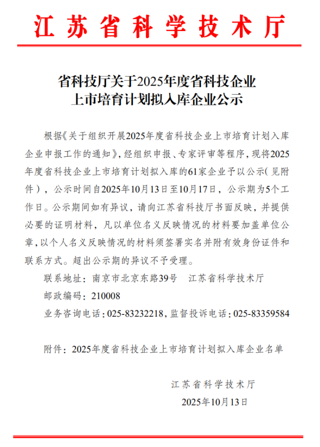 2025年度省科技企业上市培育计划拟入库企业名单公示