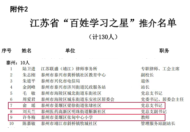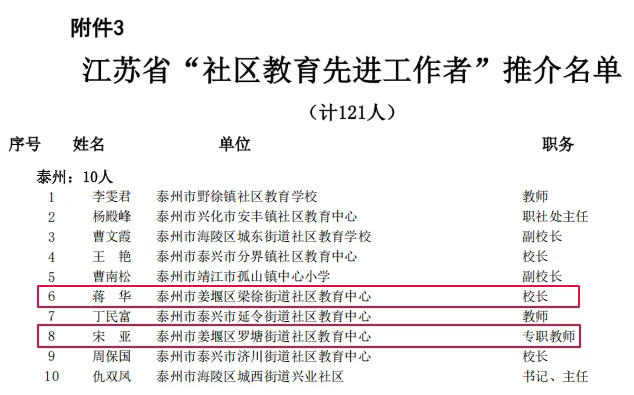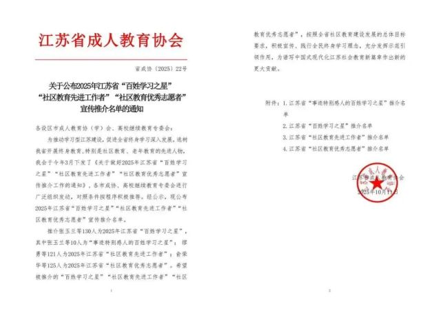2025年江苏省“百姓学习之星” “社区教育先进工作者”“社区教育优秀志愿者” 宣传推介名单