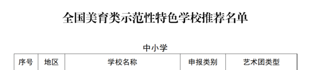 美育类学校创建是落实学校美育浸润行动的重要举措,对强化学校办学特色、展示美育成果、推动学校美育工作高质量发展具有重要意义。美育类学校指示范性学生艺术团学校。