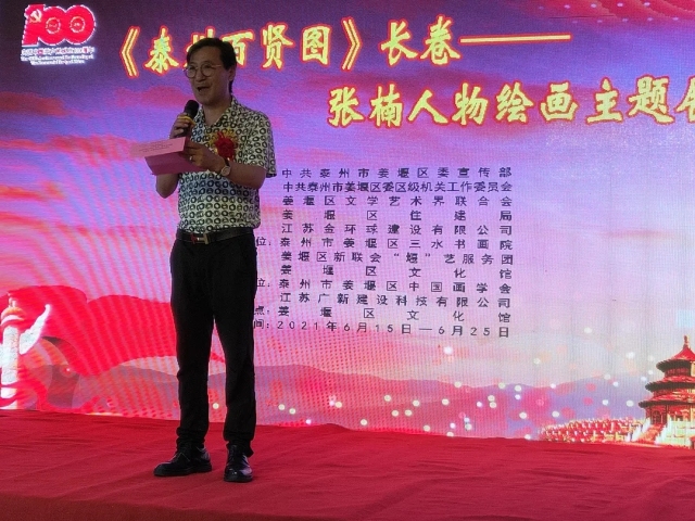 昨日(6月15日)下午,庆祝中国共产党成立100周年《泰州百贤图》长卷——张楠人物绘画展在姜堰区文化馆开展。