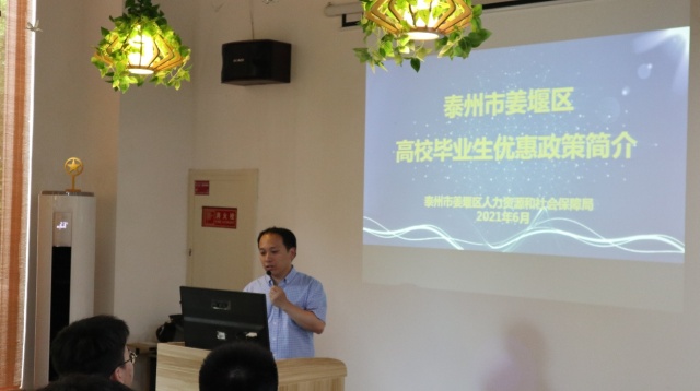 开展政策宣讲,营造“近悦远来”人才生态。姜堰不仅有赏心悦目的风景,还有宜居宜家的环境、平等开放的求职氛围。在科普馆二楼大自然课堂,姜堰区人社局工作人员满怀诚意,细致、深入地为学子们解读了人才安居优惠政策、泰州人才新政六条、就业创业优惠政策等一系列引才大礼包,让学子们真切体会到家乡的求贤若渴,引导学子们学成归来,为家乡的发展贡献青春力量。