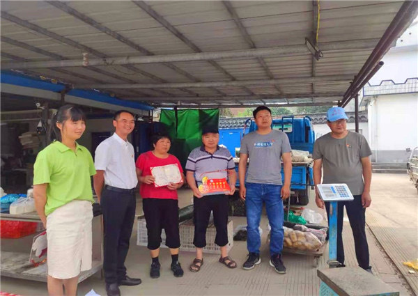 溱东村“两委”举办表彰活动,向海滨农贸市场中文明经商、诚信经营的商户授予荣誉店牌与证书