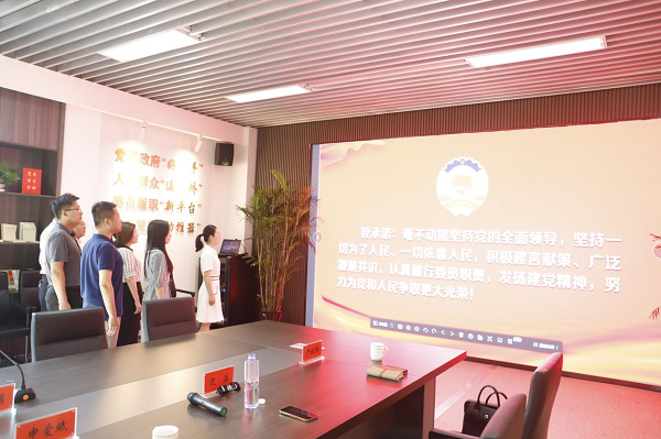 肖娟娟强调,政协特邀委员一边连着党委政府,一边连着人民群众,要充分发挥纽带作用,既要当好群众“代言人”,又要架起党委政府与群众的“连心桥”,聚焦群众关心、关注、关切的问题,多听、多看、多思考、多践行。活动最后,肖娟娟带领政协特邀委员们进行了承诺仪式,发出了履职尽责的最强音。(严婷)