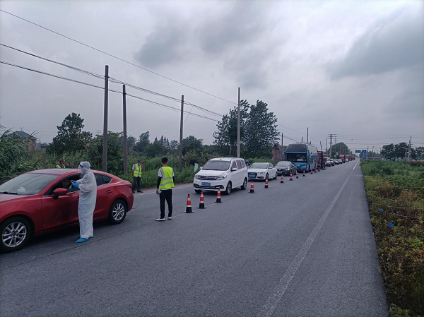 为严防疫情输入,张甸镇建立疫情防控“一办九组”,镇主要负责人带头“打样”,24小时轮班驻镇值守,九小组高效配合、协同作战,筑牢疫情防控屏障。