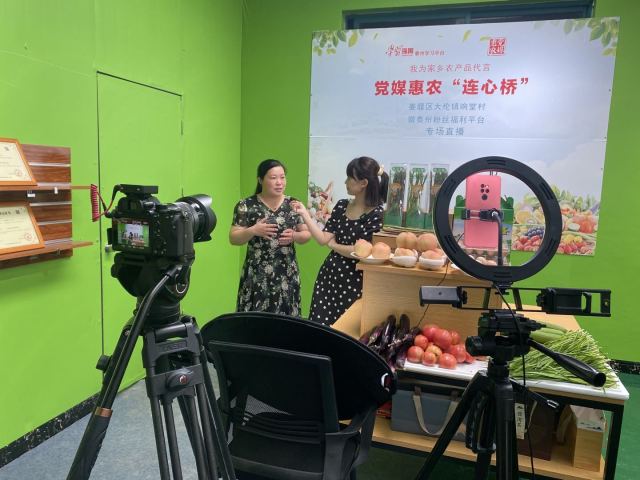 日前,在江苏省泰州市姜堰区大伦镇响堂村蔬菜种植专业合作社的田头,一场直播带货活动如火如荼进行。响堂村党支部书记、村委会主任王珠凤正在通过党媒惠农“连心桥”远教平台宣传推广合作社的水蜜桃、土鸡蛋、芦笋等农副产品。