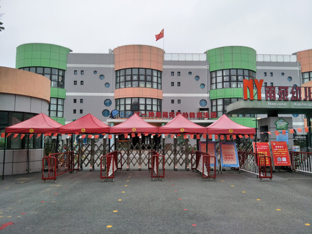 在姜堰区南苑学校,记者看到校门口设置了师生出入通道,地面有清晰的“一米线”标识,门口有戴口罩、健康码、行程码等提醒牌。疫情防控以来,该校成立防疫工作小组,对各项工作提出流程化、标准化要求,制定开学方案,严格门岗管控制度,落实疫情防控常态化措施。在学校防疫物资储备室,现存口罩11000多只、消毒水330公斤、免洗洗手液600多瓶等防疫物资,可以满足学校1个月的用量。该校副校长徐静说:“我校开学前各项准备工作有条不紊,在学校门口,从学生、老师以及外来人员进校第一步起就实行严格检查,每天都明确专人指导防疫,确保开学各项工作有序正常运转。”