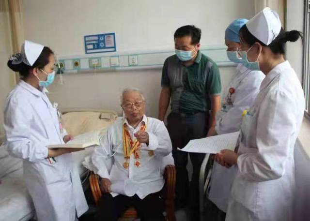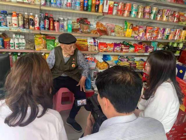 国庆节期间,100周岁的老功臣万兴圣一直没有闲着,他几次走进自家的超市,给营业员讲解战争年代的红色故事。他精神矍铄、思路清晰。大小战役他是脱口而出,讲得绘声绘色。他说,只要能讲,我会为党付出自已的生命。