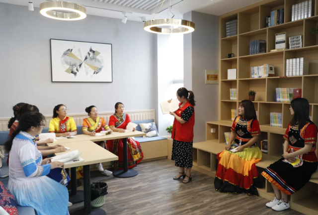 张甸村37岁的回族妇女程淑娟,13年前从江西九江嫁到张甸,为了照顾家庭,她放弃了外地的工作,在家待业。今年,张甸镇结合“我为群众办实事”实践活动,投资50万元,在张甸集镇建设了一座总面积约130平米、藏书3000余册的基层公共阅读空间——张甸书房,并以政府购买服务的形式,交由“解语花”社会服务中心管理,为少数民族妇女提供就业岗位,程淑娟便成为此项目的受益人之一。“目前,我主要是负责书房的日常管理。因为我们的到来,也吸引了许多少数民族妇女经常来书房坐一坐、看一看,这里也成为我们少数民族同胞学习党史、传播知识、交流情感的新阵地、新空间,成为民族团结互动的情感驿站。”