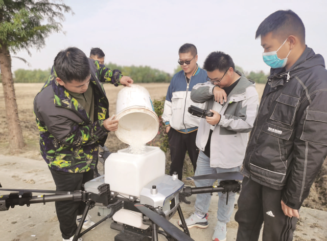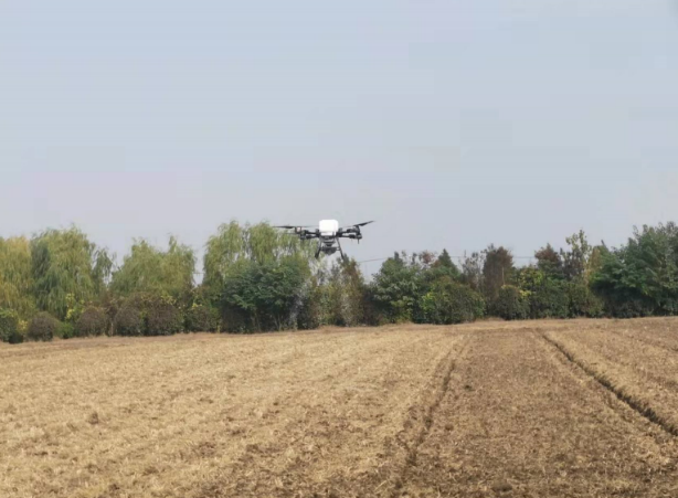 在井贤农场,机声轰鸣,旋耕机和无人机轮番作业,确保小麦播种及时。“嗡嗡嗡……”伴随螺旋桨的嗡鸣声,无人机匀速低空掠过田间,按照操控手的指令,把化肥和种子均匀地播撒田间。不到10分钟,试种的3亩地便播撒完毕。“这款无人机操作便捷。”据拓攻(南京)机器人有限公司工作人员巢晴岚介绍,这款丰鹏300植保无人机主要通过气流将化肥、谷种喷射到田里,一次性可装入约36公斤的化肥或者种子,工作效率是传统播种机播种的6倍,集“撒农药、施肥、播种”为一体,具有播撒均匀、能耗低、不伤种子等优点。“随着智能化植保技术发展,植保无人机作业效率高、安全性强、省种、环保等优势凸显,加快植保无人机在农业生产中的应用推广,对农业生产节本增收意义重大。”省农业机械技术推广站二级研究员钟志堂介绍道。