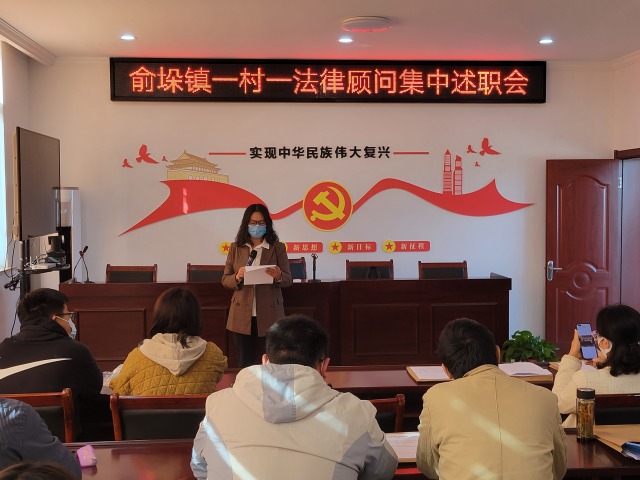 “作为一名村法律顾问,对待顾问单位及群众的公共法律服务需求,需要有‘等不起’的紧迫感、‘慢不得’的危机感、‘坐不住’的责任感!”日前,泰州市姜堰区俞垛镇2021年村法律顾问年度述职会上,法律顾问王九凤的发言获得到场村干部和群众代表的高度认同,现场掌声热烈。