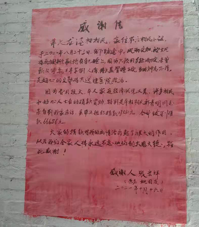 然而,住院两个多月,一大笔医疗费对于刚看到幸福曙光的张宏祥来说,无疑是雪上加霜。村党总支了解情况后,一边与公益热心人祁孝明联系,发动爱心人士伸出援助之手,一边召开村民代表大会,15位村民代表一同发声,一致投了捐款赞成票。短短几天,全村2000多人和公益热心人就捐款66686元,解了张宏祥的燃眉之急,于是就出现了文章开头那一幕。