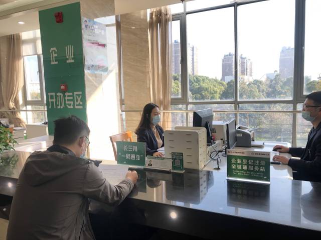 姜堰区抢抓积极策应“长三角一体化”“泰姜融合”战略布局,加大跨区域、跨层级部门联动,积极探索优化异地通办服务,主动对接长三角兄弟单位,深化交流合作、学习先进经验,为实现长三角区域异地政务服务“实时联动办理、线上双向审批”新模式按下加速键,发出了泰州首张“长三角一网通办”营业执照。同时,在全市首推“一厅、一区、一窗口”模式,高标准落实涉企审批事项“应进必进”,促成税务、公安、社保、公积金、银行、刻字社进驻开办专厅,有效形成一次性、一条龙、全闭环审批。