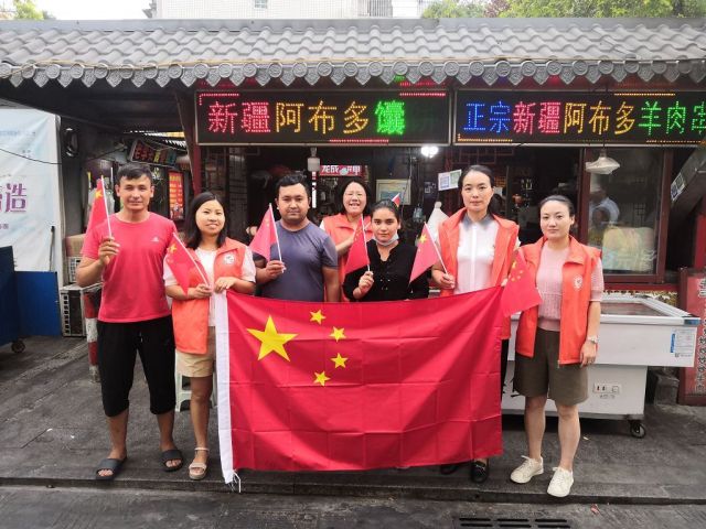 打开宣传民族政策的“双声道”。为进一步落实“我为民族地区同胞办实事”,积极宣传民族政策,引导各民族同胞永远跟党走,街道一方面强化线下宣传,利用社区宣传栏、展板、电子显示屏、讲座等载体,广泛开展民族政策法规宣传和党史知识普及,提升居民的认知度。此外,还利用各种节日契机,扎实开展以发放宣传资料、爱心义卖、法律咨询、文艺巡演等为主要内容和形式的民族宣传活动,营造浓厚的民族团结氛围;另一方面强化线上宣传,积极引导各族同胞下载“学习强国APP”,鼓励他们每天登录,深入学习“四史”等理论知识,同时组织民族地区志愿者积极参与疫情防控、垃圾分类、文明城市创建等活动,街头巷尾到处流动着一抹亮丽的“石榴红”。