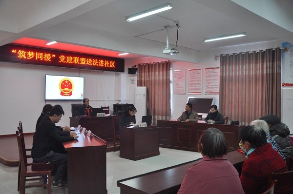 “现在开庭!”伴随着审判长的宣布和清脆的法槌声,一场引人入胜的模拟法庭在居委会三楼会议室上演。“筑梦同援”党建联盟成员单位的七名演员携手还原了一起申请人身保护令案件举证、质证、辩论的全过程。