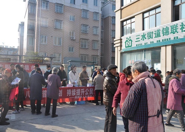 冬日暖阳里,社区汇集了七家成员单位服务项目的民生服务“大集市”格外热闹。各单位根据自身职能设置了社会保险、就业服务、法律援助政策咨询台,《民法典》《信访条例》《保障农民工工资支付条例》法规宣传台,“三反”宣讲、社保卡激活等业务服务台,居民们在这里各取所需、各解所惑,享受到了“零跑腿”“零排队”的贴心服务。