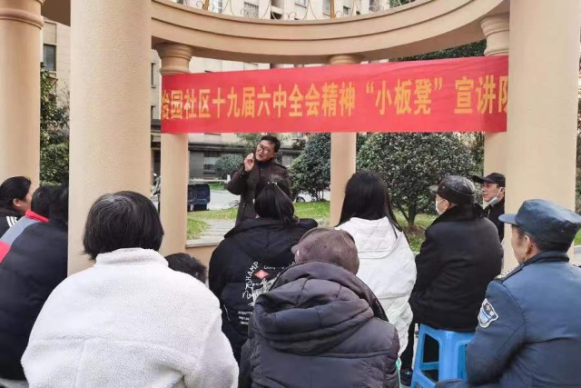 “围桌学”引领做好示范,宣讲工作深入村居。为让十九届六中全会精神走深走实、深入人心,姜堰区罗塘街道各社区以社区党委书记为组长、由社区宣传员、党员志愿者等组成的“小板凳”宣讲队,多场景多渠道开展十九届六中全会精神宣讲活动,让社区居民从历史中产生共鸣。