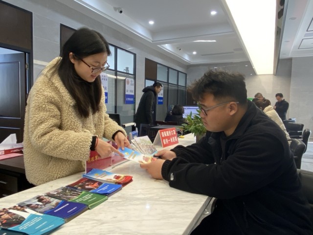 在姜堰区俞垛镇便民服务大厅退役军人服务窗口,退役士兵丁溱正在咨询关于退役军人相关优惠政策及待遇。他告诉记者:“2018年退役后,被安排到叶甸村负责退役军人事务。今天来详细了解一些政策,回去给村里的老兵们讲讲。”