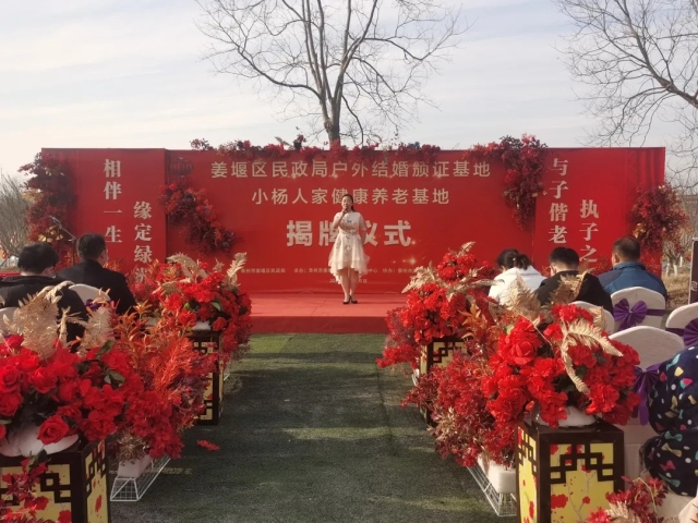 12月31日下午,泰州市姜堰区举办主题为“缘定绿洲,相伴一生”的“小杨人家”户外结婚颁证基地暨健康养老基地揭牌仪式,旨在进一步彰显本土特色田园乡村旅游资源,推进婚俗改革和康养旅游发展,打造姜堰区特色的婚姻和康养基地。