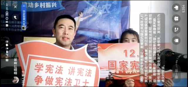 近日,泰州市姜堰区张甸镇组织镇司法所、团委、妇联等部门创新普法形式,把宪法知识送进助农直播间。直播中,姜堰区司法局张甸司法所所长蔡伟,从国家宪法日的由来、时代背景、基本内容及宪法修改的总体要求和原则等几大方面,系统地向大家普及了宪法的知识,使宪法宣传更加贴近基层、贴近群众。