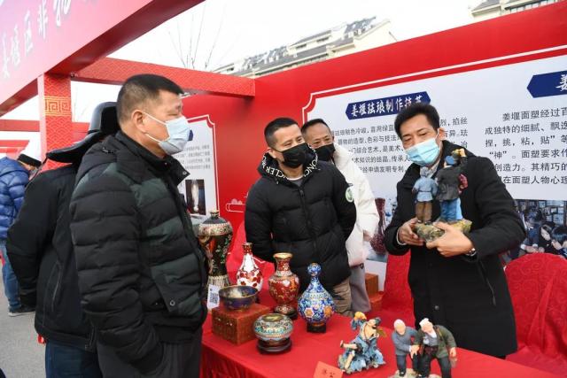“三下乡”活动现场,姜堰大炉烧饼、珐琅制作技艺、面塑等非遗项目纷纷亮相,为盛会添彩。