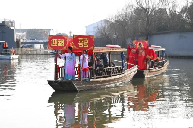 传统水上“接亲”婚俗活动,让游客们领略了里下河独特的风俗,传统水上冬捕表演,则展现了里下河地区独特的捕鱼方式。
