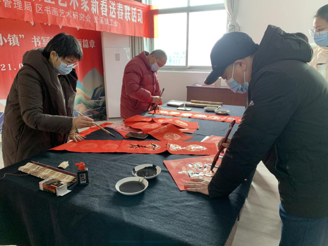 艺术家挥毫泼墨,一张张饱含祝福的“福”字,一副副代表吉祥、美好寓意的春联跃然纸上。孩子们的小眼神跟随着老师的笔尖,在心中埋下了书法的种子。“绮梦小康添虎翼,春风大道展龙图”“牛耕沃土冬年度,虎啸林川国泰昇”,用传统的方式寄托对辞旧迎新的真挚祝福、平安吉祥的美好寓意以及幸福平安的无限向往,给现场更增添了一派欢乐祥和的气氛。