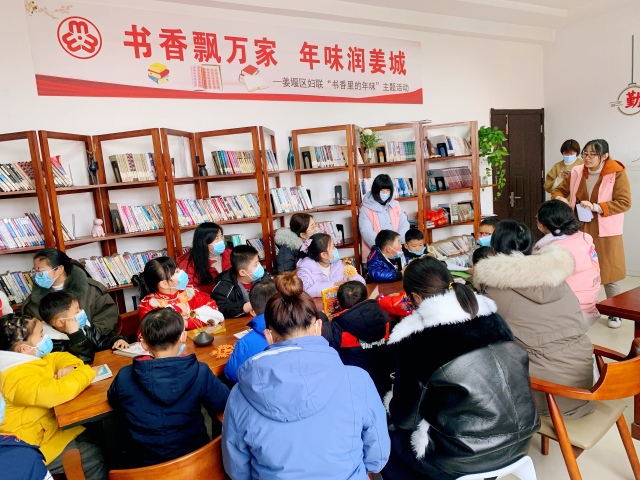 “中国古时侯有一种叫‘年’的怪兽,头长尖角,凶猛异常……从此,成了中国民间最隆重的传统节日‘过年’。”志愿者声情并茂地给小朋友们讲“年兽”的故事,孩子们瞪着一双双好奇的眼睛听得出神。《十二生肖中国年》、《这里是中国》《普天同庆:春节习俗与文化内涵》……不少孩子家长、巾帼志愿者推荐与“年”有关书籍,提倡大家过个“书香年”。
