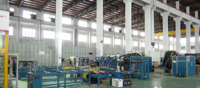 在姜堰中裕软管科技股份有限公司的供给车间,机声隆隆,各道工序生产线已全面运转起来,车间负责人申海军正和工友们一起,操作激光打字机为刚成型的消防软管打上企业LOGO,大家各司其职,全力抓生产进度,保证产品供应。