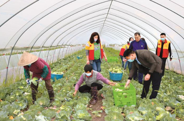 去年12月,姜堰娄庄镇马赛村在省供销合作总社下派“第一书记”姜兵的带领下,充分发挥全省供销合作社系统农产品直线流通独特优势,以村集体出资为主体、区供销合作社入股、班子成员参股、种植大户参与的合作经营模式,打造占地350亩的马赛村特色果蔬产业园,其中60亩出资主体为区供销合作社和村集体股份经济合作社,其余为赛丰农民专业合作社和种植大户投资,主要从事西兰花、花菜、甘蓝、西瓜等特色农产品种植。今年5月初,甘蓝陆续进入收获期,总产量大约250吨,受国内疫情多点散发的影响,甘蓝销售不畅。面对这一情况,马赛村10多名党员干部争当甘蓝销售代言人,发微信、拍视频、发抖音,很快打通了销售渠道。姜兵多次捧着嫩绿的甘蓝在大棚里发微信视频代言,并联系省供销合作社下属单位江苏省农副产品展示展销中心,借助此平台,将马赛村的甘蓝销向了南京、常州、张家港等地,仅南京市场就先后发货50吨。姜堰先锋公益发展促进会等爱心组织和各界爱心人士也纷至沓来,采摘购买10多吨。与此同时,党员干部还主动联系本地多家超市、食堂、农贸市场,陆续销售30吨……