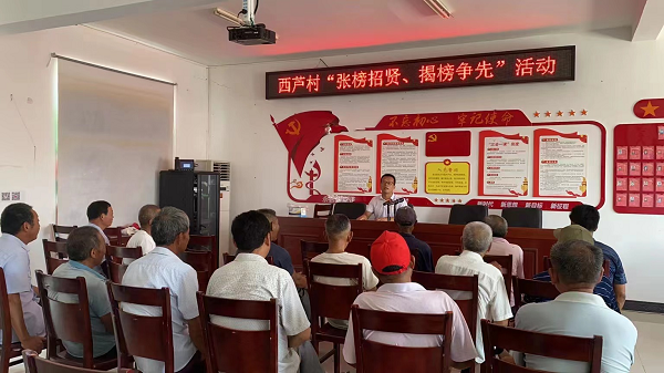 各村退役军人服务站面向退役军人广泛宣传“张榜招贤、揭榜争先”活动的目的意义、程序步骤,公布设榜的名称、职责及职数等,确保“张榜招贤、揭榜争先”活动入脑入心。鼓励退役军人对照设榜条件,结合自身的身体状况、特长等实际状况,自我选择揭榜,填报申请表。村党组织结合退役军人的特长、文化程度、年龄等因素,综合比较揭榜能力,择优选出最符合“争先”的人选揭榜,已揭榜42个。
