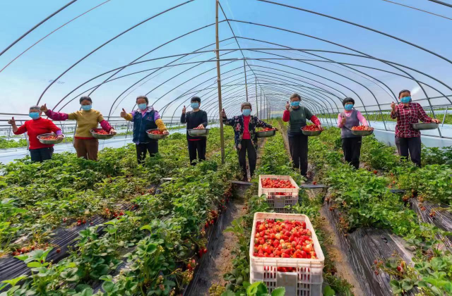 蒋垛镇盐大村地处黄桥革命老区,村集体经济收入一直是制约发展的“短板”,该村大力发展草莓种植,一期项目与山姆超市、盒马鲜生等商超达成销售合作,每斤草莓零售价格翻了5倍,仅这一项就增加村集体收入25万元,吸引300名村民在家门口就业,收入380万元。