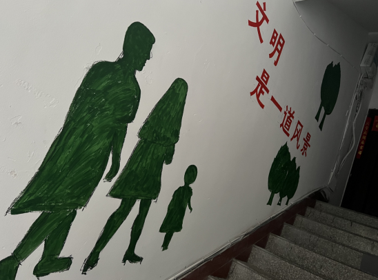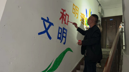 “文明是一道风景”“文明在我身边,小事从我做起”,新阶层人士用一句句标语、一幅幅作品,让原本老旧的楼道顿时充满了生机和活力,让文明之美悄然走进群众心中。“现在走到这儿,心情特别愉悦,作为这里的一员,我要向墙绘展示的那样,自觉遵守公德,争做文明市民。”