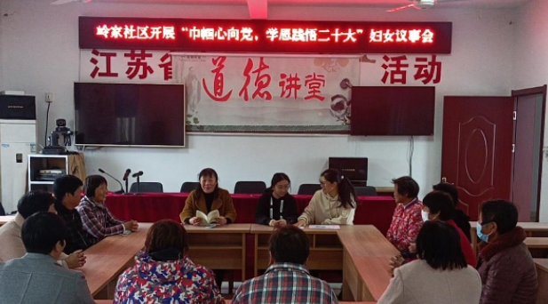 在岭家社区“巾帼心向党 学思践悟党的二十大”妇女议事会上,“梁子军”巾帼宣讲员陈爱玲与妇女群众齐学共议党的二十大。宣讲会上,陈爱玲结合个人经历,聚焦妇女群众急难愁盼问题,带领大家学习领会党的二十大报告相关重要论述,呼吁女性朋友在党的带领下弘扬新时代女性精神,绽放“半边天”风采。