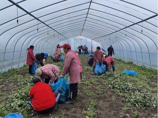 “村里的合作社需要人手,我们在家也没有事,就来菠菜地里打个零工,每天出来挣钱的同时,离家近不耽误照顾孩子,一年还能多几千元的收入。”正在大棚里忙着收割菠菜的村民禹巧英满脸笑意。