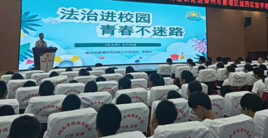 为进一步提升青少年法治意识,引导青少年树立正确的法律观念,近日,泰州市姜堰区司法局三水司法所联合三水街道团工委,共同走进姜堰区城西实验学校,开展以“知法明心智 润心护成长”为主题的民法典系列法治宣讲活动,为学生带来了一堂生动且实用的法律知识课。