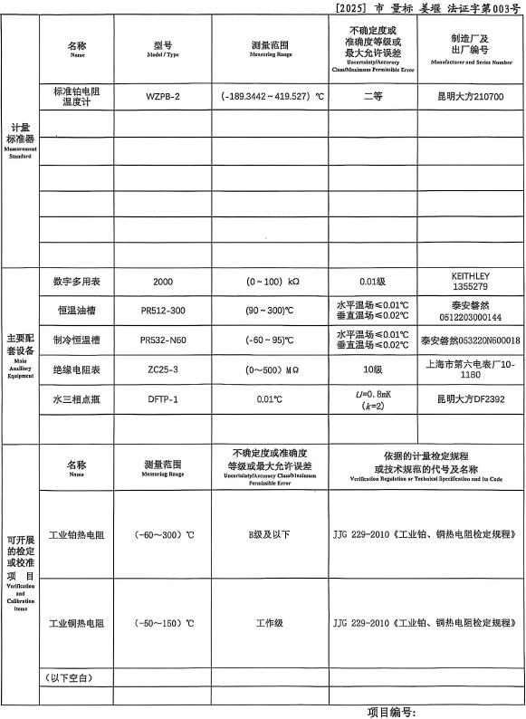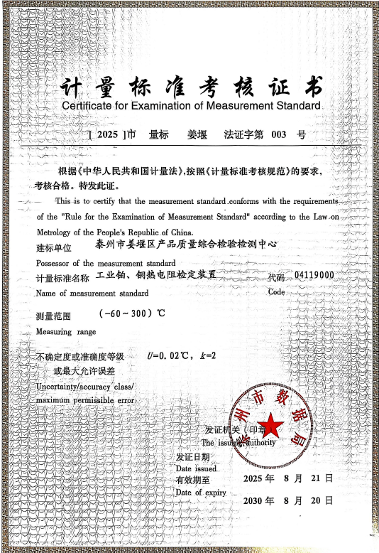 本次建标的工业铂、铜热电阻检定装置,严格依据国家计量技术规范搭建,可满足工业铂热电阻(B级及以下)(-60~300)℃及铜热电阻(工作级)(-50~150)℃的检定需求。装置的投用将显著缩短企业送检周期,降低溯源成本,并为区域企业提供坚实的计量技术支撑。