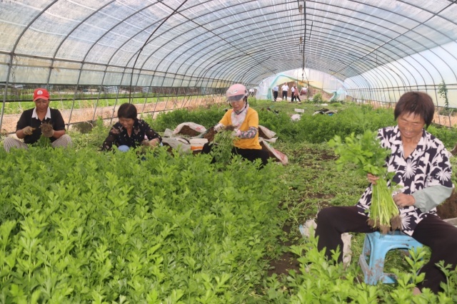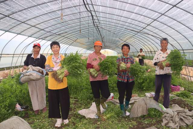 “土地流转有租金,家门口上班有工资,日子踏实多了!”62岁的村民郭凤兰一边捆扎芹菜一边算账,家里1亩多地流转给基地,每年能收1000元租金,自己在基地务工每天还有80元收入,“不用离家,活儿也轻松,还能锻炼身体,比在家闲坐着强,大家边干活边说笑,生活也充实。”