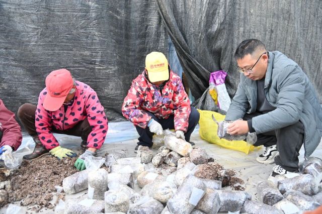 大棚一角,羊肚菌种植技术指导张桂平正蹲在地上查看土壤湿度,并不时提醒工作人员播种注意事项。“羊肚菌种植,时间把控是关键中的关键!”张桂平解释道,本地最佳播种期在11月中旬前后,最晚不能超过11月底。“要是种晚了,明年3月气温升高,会直接影响菌丝生长和子实体发育,产量和品质都会打折扣。”他指着一旁堆放的小麦袋介绍,菌种种下后,10到15天内就要投放以小麦为主要原料的营养包,“这可是羊肚菌生长的‘营养餐’,能为菌丝提供充足养分,保障产量。”