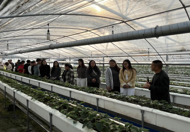 活动首站设在梁徐街道双墩社区草莓园。在这里,抽象的“新质生产力”化为可观、可感的生动实践。社区党组织副书记邓亚兵化身“科技向导”,在莓果芬芳中,现场演示物联网系统如何精准调控温湿光照、实现水肥一体化,详解如何利用生物防治技术替代化学农药,实现“提质增效”。与会代表边看边问,从技术原理到投入产出,讨论热烈。“手机成了新农具,数据成了新农资”,这场沉浸式观摩让大家真切感受到科技如何让传统农业“脱胎换骨”,为高质量发展提供了最直观的注脚。