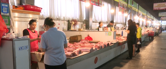 除了蔬菜,肉类价格也出现了小幅下调,成为不少市民采购的“小惊喜”。在肉类交易区,各个摊位上的前腿肉、排骨等肉类分类摆放,吸引消费者驻足选购。