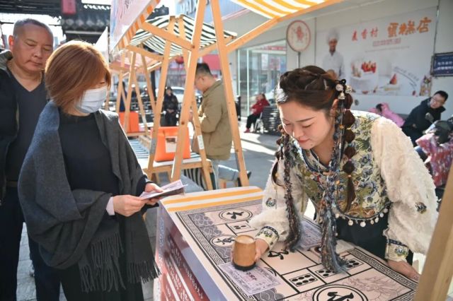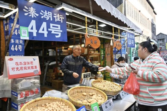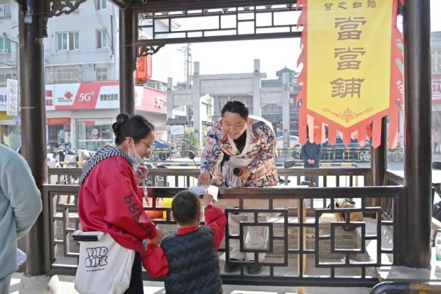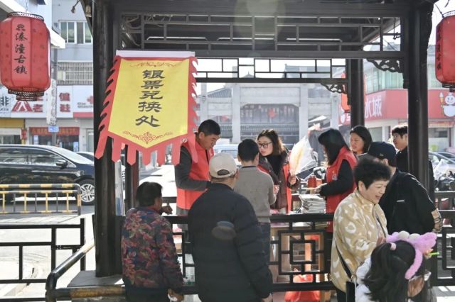 作为活动核心玩法,银票闯关博弈深受青睐。主会场设置的兑换区、拍卖行、典当行及6个社区摊位功能分明,游客凭手中银票可兑换文创礼品、特色美食以及餐饮、商铺折扣券、研学免单券等福利。趣味十足的互动体验、丰厚实在的兑换福利,让游客在感受溱潼民俗魅力的同时,带动了本地餐饮、零售等三产消费,让古镇老街尽显烟火气息。