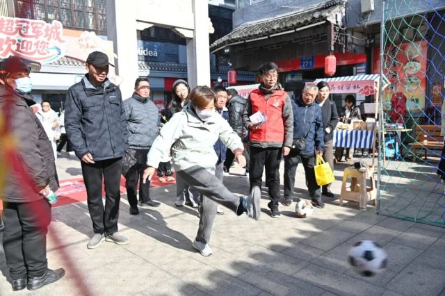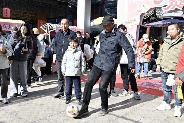 主会场牌坊处更是热闹非凡,摇大骰子、闭眼敲锣等定点游戏前围满了前来参与的游客,点球大赛区域不时传来欢呼喝彩,游客们在欢乐闯关间收获满满银票。此外,游客在老街商家消费也可获得银票,多元获票方式让大家热情高涨。
