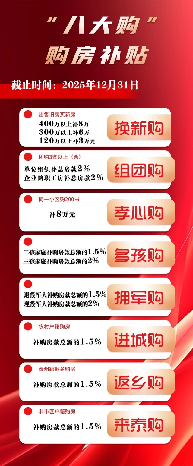 姜堰区“八大购”购房补贴