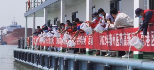 泰州医药高新区(高港区):民族一家亲 共护母亲河,50名志愿者放流7万尾河豚鱼苗