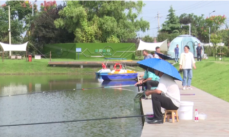 据介绍,该基地是杨李村‘党建引领露营基地文旅’项目,占地13亩。今年该村通过整治水体、实施绿化改造、新建基础设施等方式,将一个荒芜的小水潭变成了集休闲垂钓、露营拓展、生态采摘等于一体的乡村游打卡点。