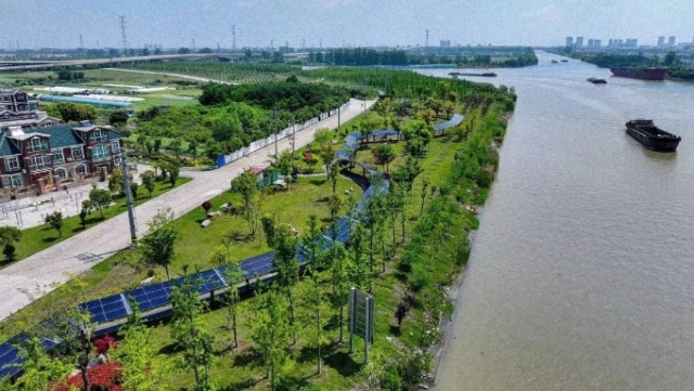 当昔日脏乱的船厂被一片绿意覆盖,光伏走廊点亮新晋“网红打卡地”,“新质生产力就是绿色生产力”在海陵区找到了鲜活注解。