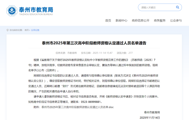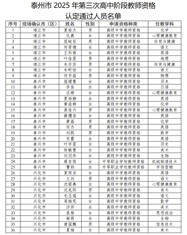 通过名单公布!姜堰25名教师!
