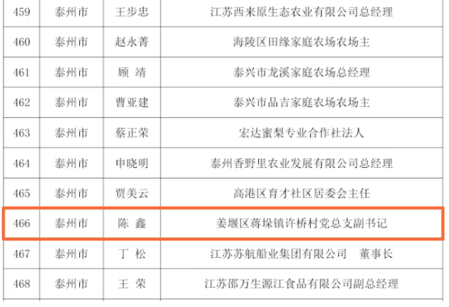 江苏省第三批乡土人才“三带”能手拟入选人员名单(泰州)
